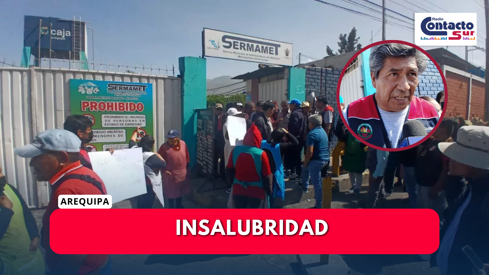 Comerciantes del mercado mayorista de Río Seco protestan por los malos olores del camal metropolitano de Sermamet, situación que según el presidente del mercado, Cristóbal Huayapa afecta la salud de los trabajadores y aleja a los clientes en Cerro Colorado
