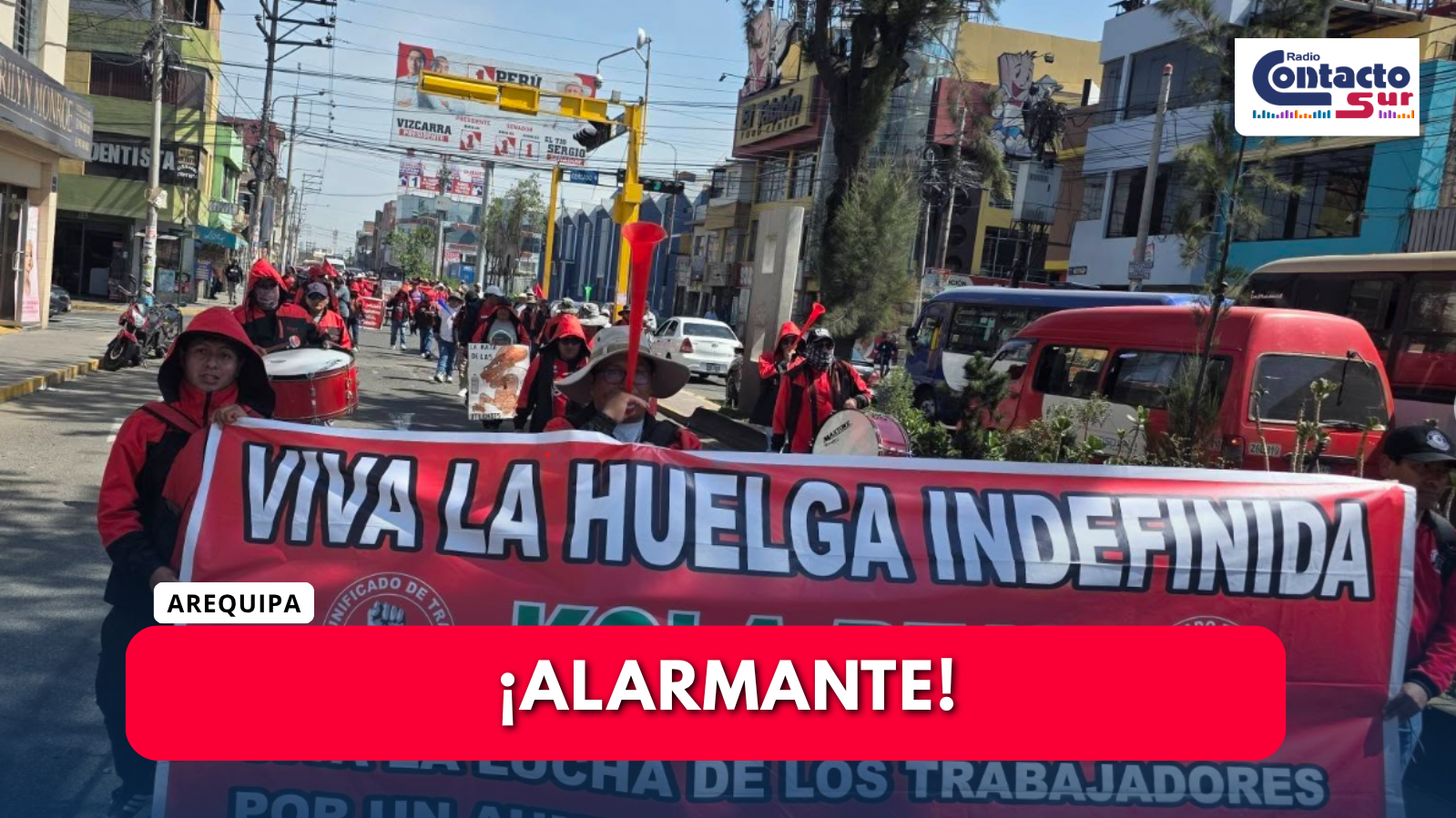 Trabajadores de la empresa Kola Real realizaron una protesta en exteriores de la Gerencia Regional de Trabajo, donde incluso bloquearon la calle universidad e instalaron una olla común como medida de lucha para exigir el cumplimiento de sus derechos laborales.